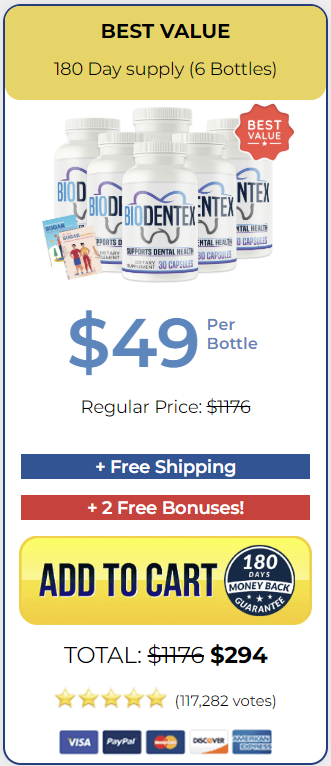 We’re confident that Biodentex will give you the support you need for healthy teeth and gums. That’s why every bottle comes with a 180-day 100% money-back guarantee.